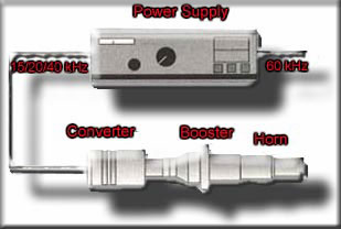 1. Generator - The generator is responsible for changing standard electrical power into electrical energy at a predetermined frequency. The most common frequencies used in manufacturing are 20Khz and 40Khz.